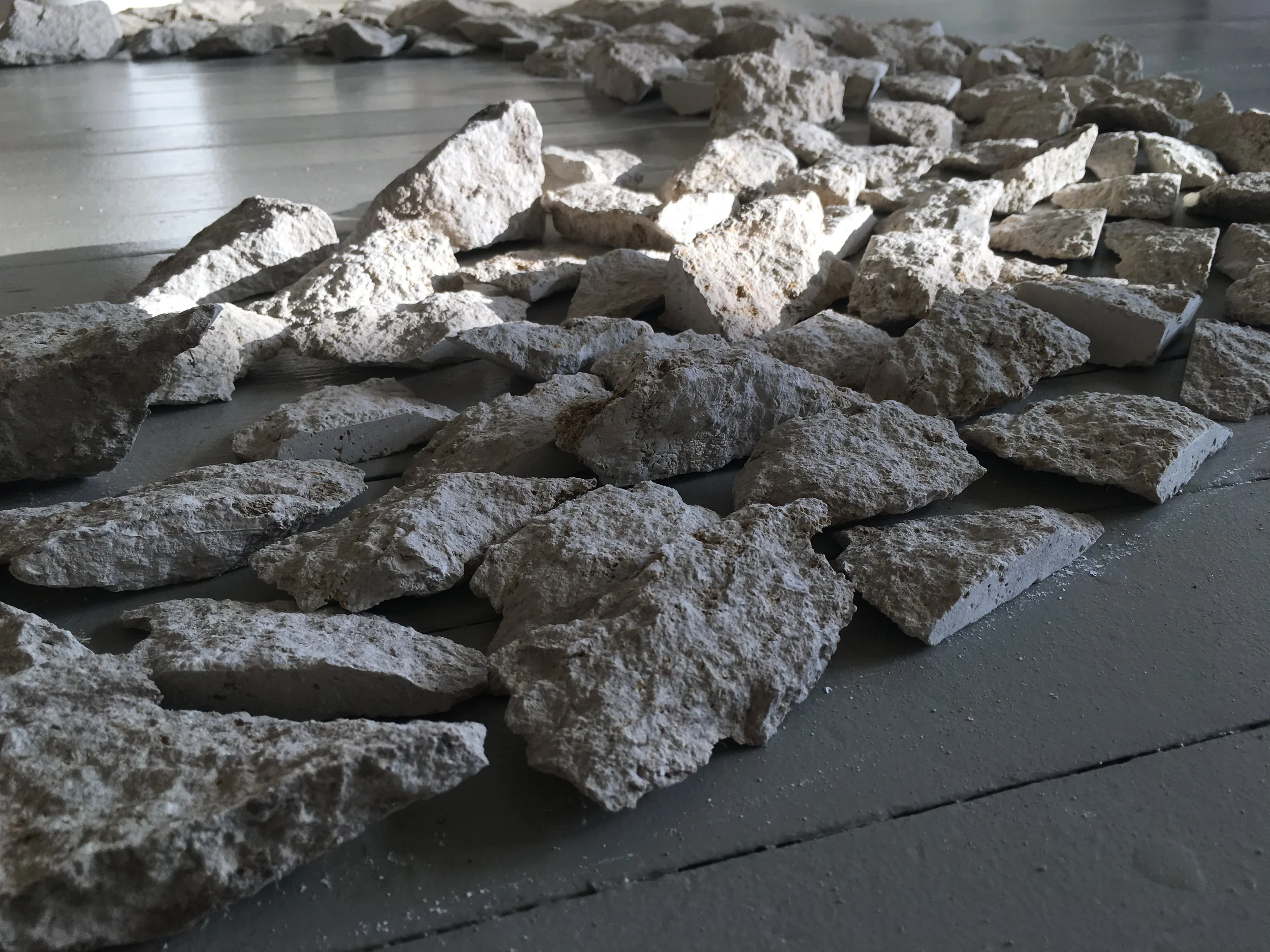 This minimal installation, created during an artist residency at the Lawrence Art Center in Lawrence Kansas, and composed of simply stacked and scorched straw bales, has its genesis in my childhood. In the early spring, before the grass sprang to life, my family would burn the banks of the drainage ditches surrounding the fields. These charred lines of earth, with their inky black texture stood in stark contrast to the vibrant chartreuse of the emerging growth. The land would smell of scorched earth until the next rain and would cleanse the landscape and initiate the growth of the next season. This installation celebrates the agrarian community surrounding Lawrence, the annual ritual of burning and the reemergence of plants in the spring.